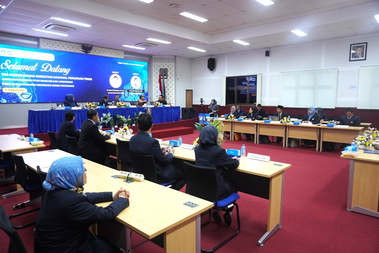 Sekolah Pascasarjana, Universitas Negeri Yogyakarta (UNY), pada hari Selasa, 07 April 2026, melaksanakan Asesmen Lapangan Akreditasi yang dilaksanakan oleh BAN-PT untuk Program Studi S2 Ilmu Lingkungan. Kegiatan berlangsung pada pukul 08.00 di Ruang Aula SPs Gedung Sugeng Mardiono Lantai 3 sekolah Pascasarjana UNY, yang dihadiri oleh dua asesor, yakni Dr. Benno Rahardyan, S.T., M.T dan Dr. Dwi Setyawan