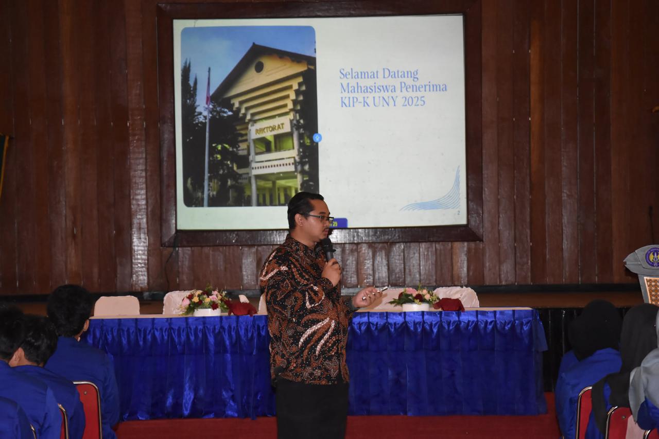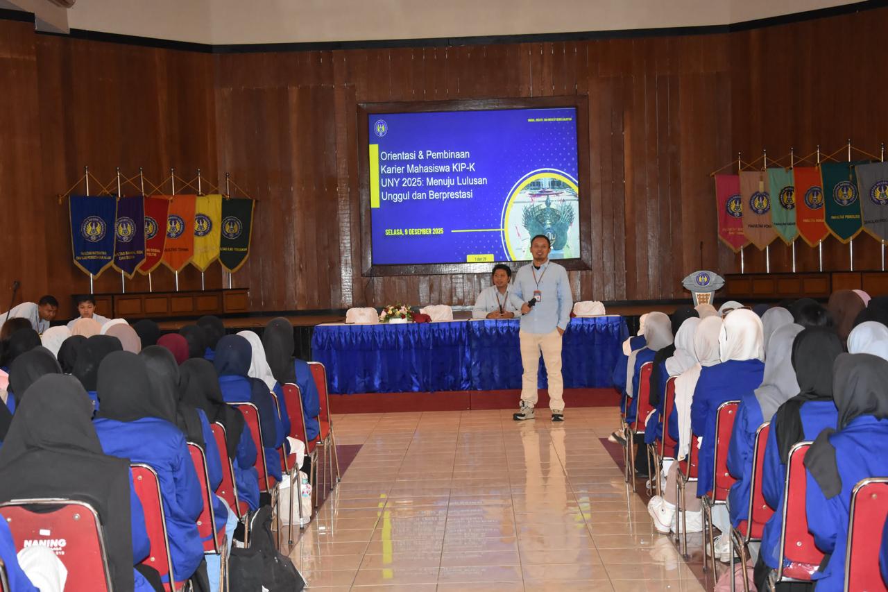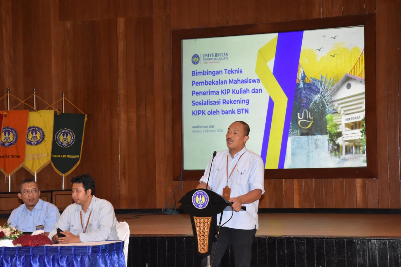 Direktorat Kemahasiswaan dan Alumni Universitas Negeri Yogyakarta menyelenggarakan Bimbingan Teknis Pembekalan Mahasiswa Penerima Beasiswa Kartu Indonesia Pintar Kuliah (KIPK) serta Sosialisasi Rekening KIPK oleh Bank BTN pada Selasa, 9 Desember 2025, bertempat di Auditorium UNY. Kegiatan ini dihadiri ratusan mahasiswa penerima manfaat KIPK dari seluruh fakultas di lingkungan UNY sejumlah 1328 mahasiswa berdasarkan laporan panitia penyelenggara Dr. Okky Indera Pamungkas, M.Or.