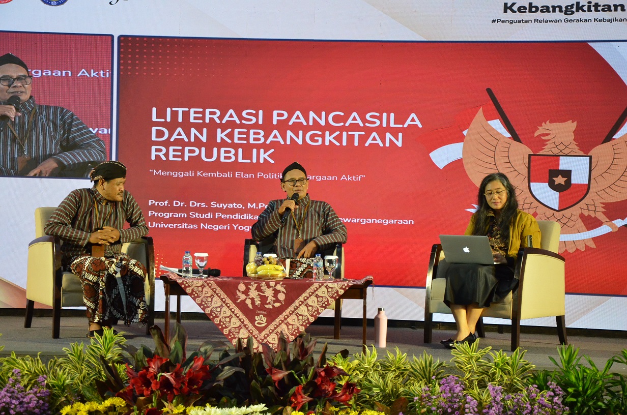 Fakultas Ilmu Sosial dan Ilmu Politik Universitas Negeri Yogyakarta (FISIP UNY) bekerja sama dengan Badan Pembinaan Ideologi Pancasila (BPIP) menggelar Seminar Nasional Penguatan Relawan Gerakan Kebajikan Pancasila Bagi Masyarakat bertema ‘Literasi Pancasila dan Kebangkitan Republik’, Kamis (23/10/25) di Gedung Pascasarjana UNY. Kegiatan ini menghadirkan sejumlah tokoh nasional dan akademisi yang membahas pentingnya memperkuat pemahaman serta praktik nilai-nilai Pancasila di tengah dinamika kehidupan berbangsa.