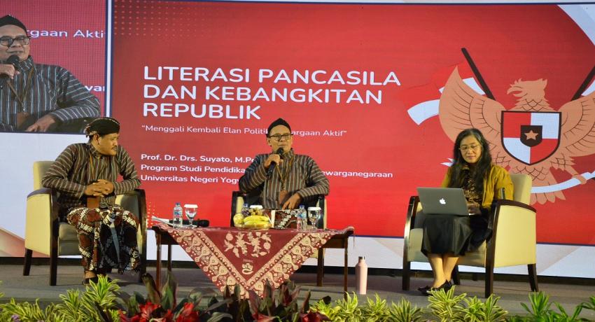 Diskusi panel berlangsung dinamis dengan menghadirkan Prof. Suyato, Ketua Departemen Pendidikan Kewarganegaraan FISIP UNY, dan Dr. Irene Camelyn Sinaga, Direktur Pengkajian Implementasi Pembinaan Ideologi Pancasila BPIP. Kedua narasumber menyoroti pentingnya sinergi antara dunia pendidikan, lembaga negara, dan masyarakat dalam menumbuhkan kesadaran ideologis yang berakar pada nilai-nilai Pancasila.