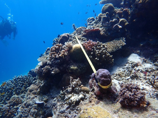 Lokasi pengambilan sampel dibagi ke dalam dua kedalaman, yaitu 4 meter dan 12 meter. Hal ini dilakukan untuk melihat perbedaan dominasi spesies karang pada berbagai lapisan perairan. Pada sisi lain, data mengenai populasi ikan karang dicatat dengan cermat melalui perekaman visual sepanjang garis transek 50 meter.