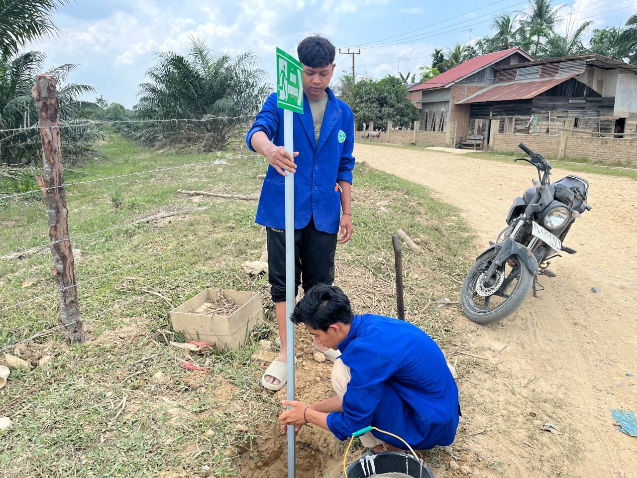 Program utama yang dijalankan adalah pembuatan dan pemasangan material plang jalur evakuasi di titik-titik strategis desa sebagai upaya meningkatkan kesiapsiagaan masyarakat dalam menghadapi potensi bencana. Plang jalur evakuasi dipasang di area persimpangan, fasilitas umum, dan lingkungan sekolah agar mudah terlihat dan dipahami warga. Program ini mendukung pencapaian SDG 11 (Kota dan Komunitas Berkelanjutan) dan SDG 13 (Aksi Iklim) karena memperkuat sistem mitigasi bencana berbasis masyarakat.