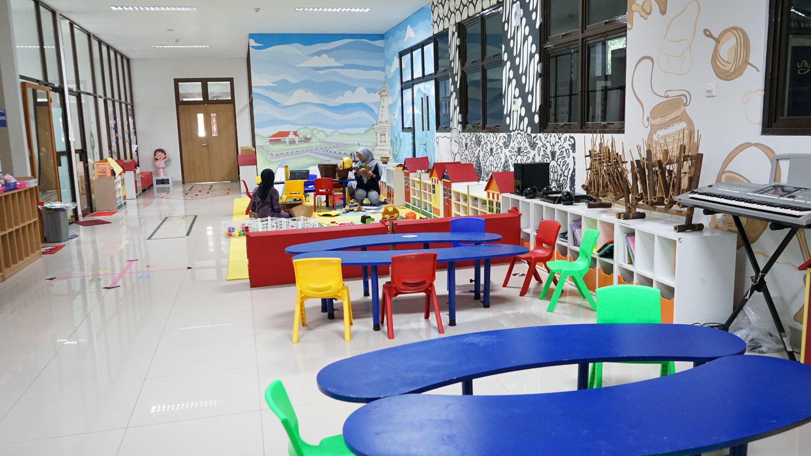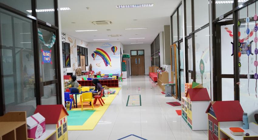 Kepala Laboratorium, Dr. Marta Christianti, M.Pd., bersama seorang laboran dan mahasiswa magang, memastikan operasional berjalan optimal sesuai jam kantor UNY (pukul 08.00 – 16.00 WIB). Layanan Childcare Service menawarkan pilihan durasi Full-day (Rp50.000) dan Half-day (Rp40.000) dengan fasilitas yang berfokus pada tumbuh kembang anak. Fasilitas tersebut mencakup kegiatan bermain edukatif, makanan sehat (snack pagi & sore, makan siang), ruang bermain bersih dan ber-AC, fasilitas mandi sore, hingga ruang tidur terpisah untuk anak laki-laki dan perempuan.