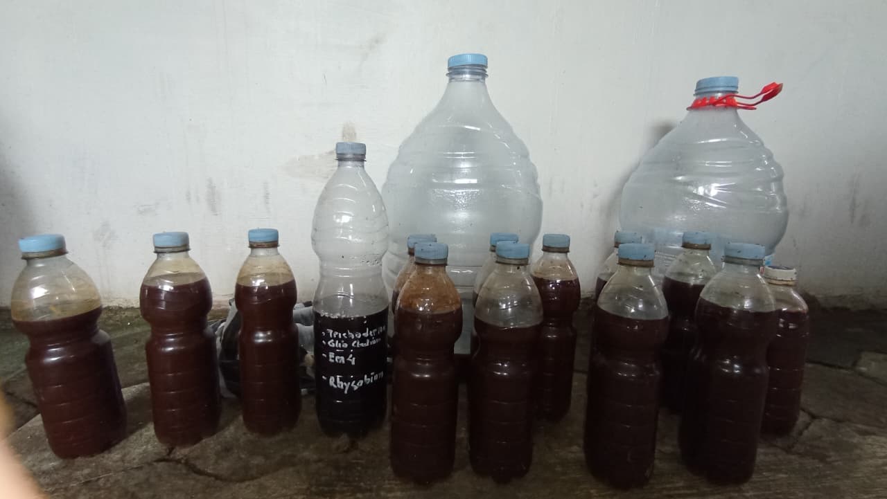 Dalam penyampaiannya, mahasiswa memperkenalkan bahan-bahan yang digunakan, antara lain limbah tahu 1,7 liter, tetes tebu (molase) 300 ml, serta starter fermentasi 150 ml. Masyarakat juga dikenalkan pada jenis-jenis starter yang dapat digunakan, seperti air bekas cucian beras, Effective Microorganisms (EM4), Trichoderma, Gliocladium, hingga Rhizobium. Starter ini berfungsi mempercepat proses fermentasi sehingga limbah tahu dapat terurai dengan baik dan menghasilkan pupuk cair berkualitas.