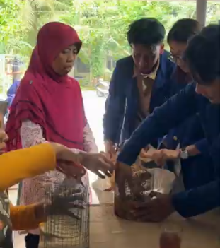 Sementara itu, Ricki Dwi Erlangga menjelaskan secara rinci teknis pembuatan pot dari serabut kelapa kepada peserta kegiatan. Ia memaparkan bahwa proses pembuatan pot dimulai dari pemilihan serabut kelapa yang kering dan bersih, kemudian direndam agar teksturnya lebih lentur dan mudah dibentuk. Setelah itu, serabut disusun pada cetakan atau rangka kawat sesuai bentuk pot yang diinginkan.