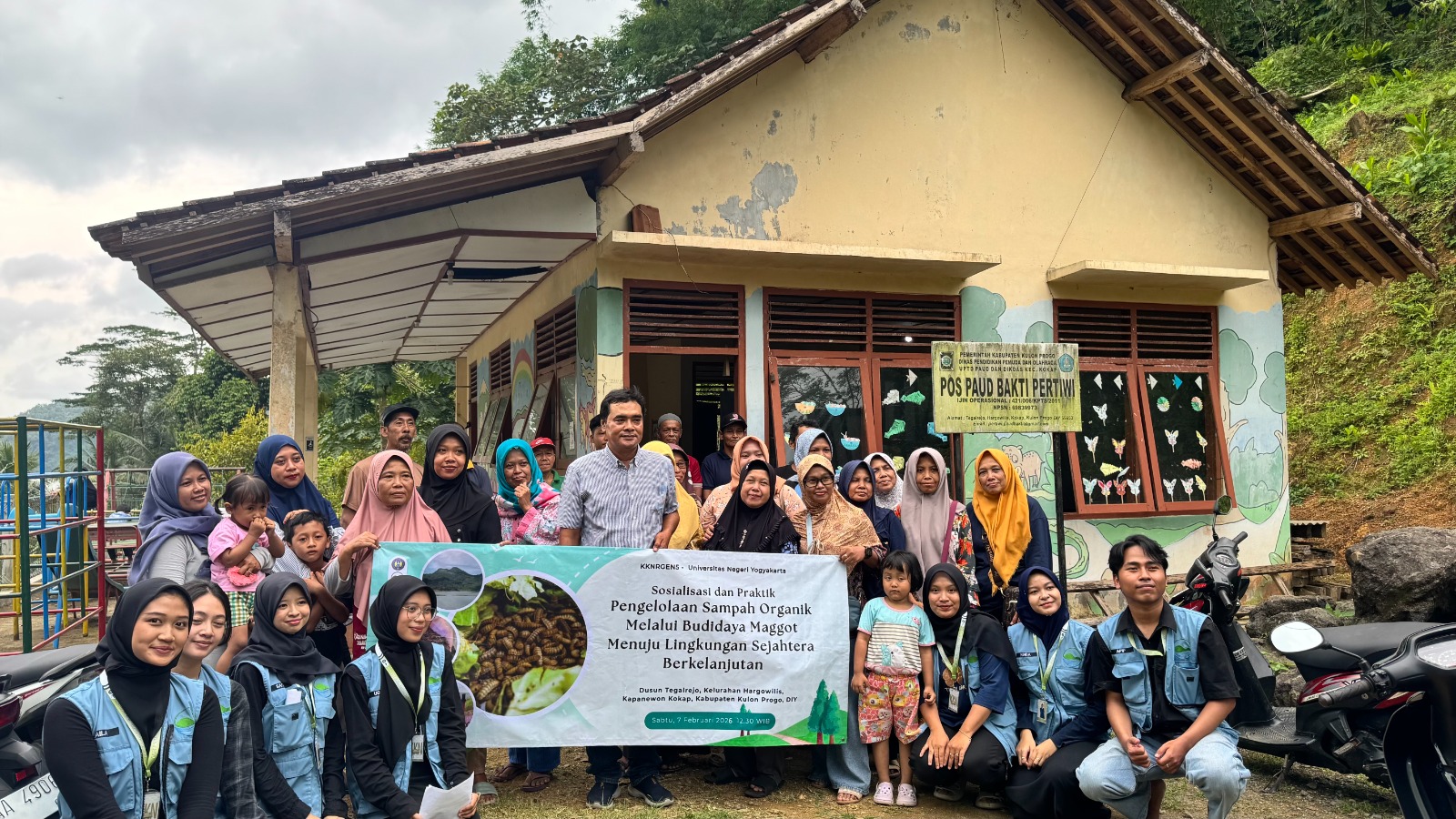 Mahasiswa KKNRGen5 UNY melaksanakan kegiatan sosialisasi dan praktik budidaya maggot Black Soldier Fly (BSF) di Padukuhan Tegalrejo, Kalurahan Hargowilis, Kapanewon Kokap, Kabupaten Kulonprogo. Kegiatan ini menjadi bagian dari upaya edukasi pengelolaan sampah organik berbasis masyarakat sekaligus pemberdayaan ekonomi lokal.