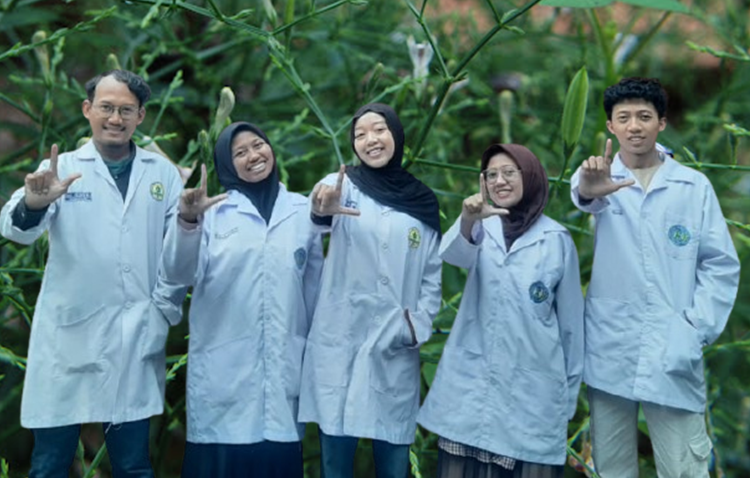 Melihat persoalan tersebut, tim yang beranggotakan Muhammad Izzatul Ikhsan (S1 Biologi), Fatahilah Annashiry (S1 Kimia), Alika Azimatinur Raudha (S1 Matematika), dan Marwa Husna (S1 Pendidikan Kimia) berupaya menawarkan solusi ilmiah berbasis bioteknologi. Mereka memanfaatkan senyawa andrographolide dari daun sambiloto yang bersifat antibakteri alami, dikombinasikan dengan kitosan hasil olahan limbah kulit udang untuk membentuk sistem penghantaran obat atau drug delivery system (DDS) yang lebih efektif dan aman bagi tubuh. “Daun sambiloto terbukti mampu melawan bakteri penyebab TBC hingga 87,6% dalam tujuh hari. Namun, stabilitas senyawa ini masih rendah. Karena itu kami mengembangkan teknologi liposom berlapis kitosan agar senyawa aktifnya bisa bertahan lebih lama dan langsung menargetkan sel di paru-paru,” ujar Azahra Yasami Kamis (16/10/25).
