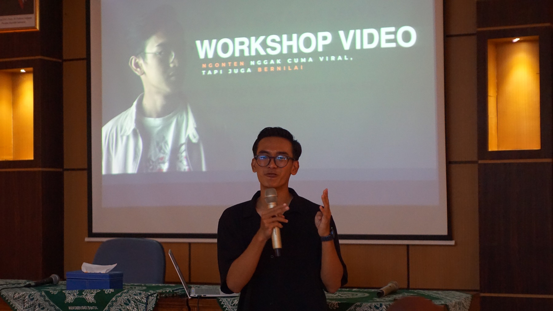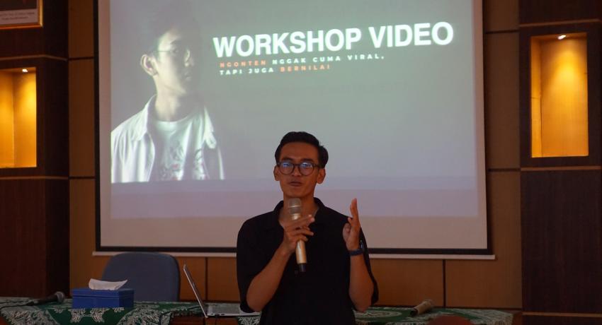 Workshop Editing dan Kompetisi Video Kreatif menghadirkan Abdullah Mahfudz Al Ghazali selaku konten kreator videography, ia menyampaikan konten yang dibagikan bukan hanya viral melainkan harus memiliki sebuah nilai yang terkandung di dalamnya. “Salah satu tantangan bagi pemula adalah tidak mau memulai karena tidak ada alat yang memadai, padahal saya memulai ngonten itu dari alat seadanya bahkan pinjam, namun seiring berjalannya waktu dan skill semakin meningkat, saya mulai membeli alat, maka yang lebih penting dari alat adalah keinginan dan kemampuan yang memadai, alat canggih tapi tidak bisa mengoperasionalkan itu percuma”. ucap Mahasiswa Bimbingan dan Konseling.