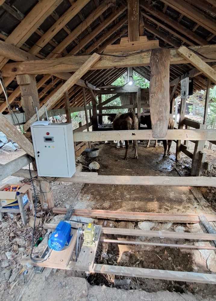 SmartCleaner dirakit di Bengkel Elektro FT UNY dengan menggabungkan sejumlah komponen inti menjadi satu sistem terpadu. Panel surya digunakan sebagai sumber energi utama yang ramah lingkungan. Tenaga listrik dari panel ini menggerakkan motor listrik dan penggaruk otomatis yang bekerja sesuai jadwal melalui modul Real-Time Clock (RTC). Dengan demikian, pembersihan kandang tidak lagi bergantung pada tenaga manusia. Sistem ini juga dilengkapi sensor amonia MQ-137 yang mendeteksi konsentrasi gas berbahaya. Jika kadar amonia melampaui ambang batas, kipas exhaust otomatis akan aktif dan notifikasi dikirim ke smartphone peternak melalui aplikasi IoT. Semua informasi terkait jadwal pembersihan, kondisi kandang, dan grafik kadar amonia dapat dipantau secara real-time. Kotoran sapi yang digaruk otomatis lalu dialirkan ke wadah khusus untuk diolah menjadi pupuk organik, sehingga tidak hanya menjaga kebersihan kandang tetapi juga membuka peluang ekonomi baru.