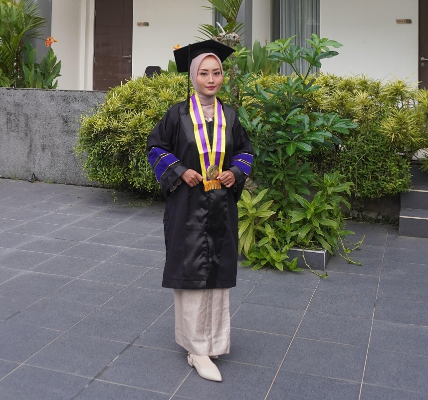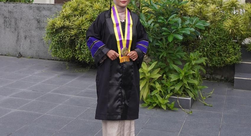 Berasal dari keluarga wiraswasta sederhana, gelar magister yang diraihnya bukan hanya kebanggaan pribadi, tetapi juga persembahan untuk orang tua dan pembuktian bagi dirinya sendiri. “Selain untuk orang tua, juga untuk diri sendiri. Apalagi sebagai perempuan, ingin membuktikan bahwa perempuan juga punya kemampuan untuk menempuh pendidikan tinggi,” imbuhnya.