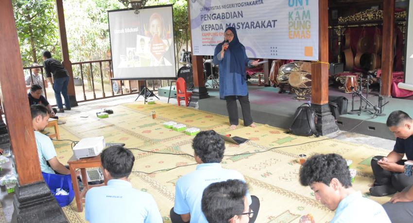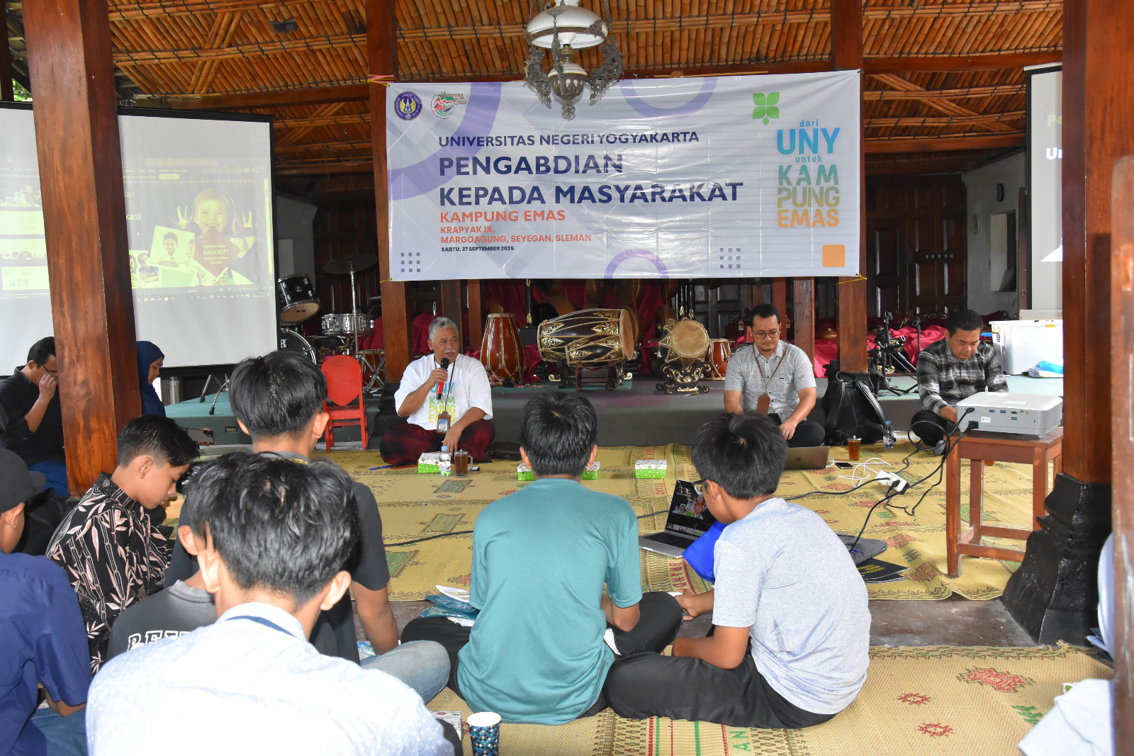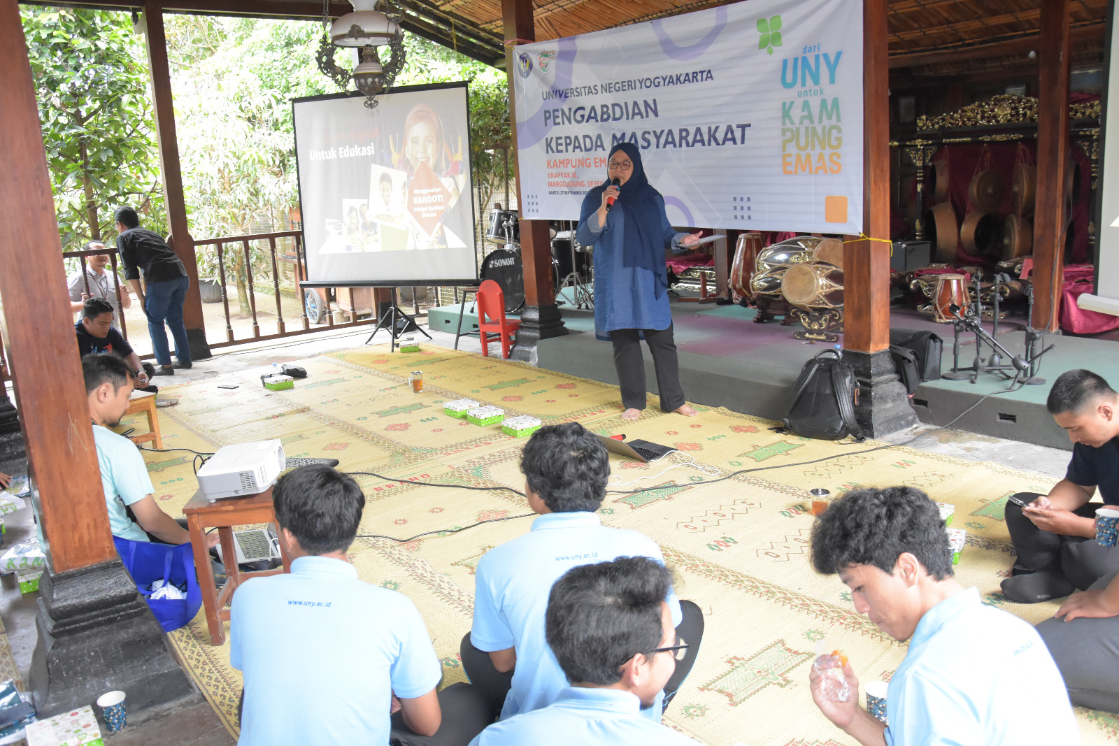 Dalam rangka memberikan pemahaman, kesadaran, dan pelatihan kepada masyarakat dalam menggunakan platform digital untuk belajar, meningkatkan kreativitas, dan inovasi, serta mengelola, mempromosikan Laboratorium Kampung Emas, Universitas Negeri Yogyakarta mengadakan kegiatan Pengabdian kepada Masyarakat (PkM) berupa “Pelatihan Pemanfaatan platform digital untuk edukasi dan bisnis” dan “Pelatihan Pembuatan Konten Digital Kreatif di Media Sosial untuk Mempromosikan Laboratorium Kampung Emas Seyegan”.