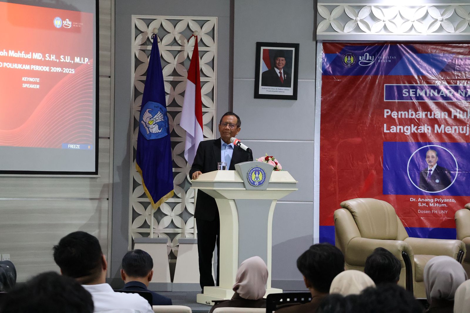 Dekan FH UNY, Prof. Dr. Mukhamad Murdiono, menyampaikan bahwa seminar ini diharapkan menjadi ruang akademik untuk merumuskan gagasan pembaruan hukum acara pidana yang lebih responsif terhadap dinamika masyarakat dan menjunjung tinggi hak asasi manusia.