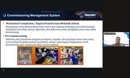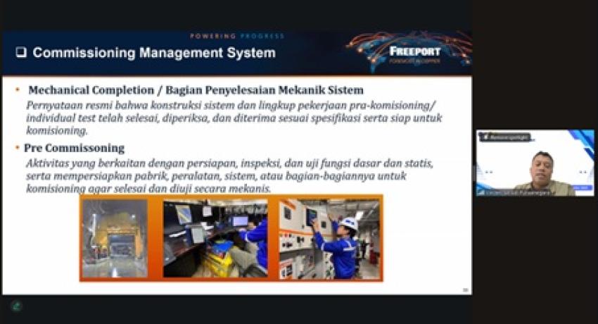 Pemateri pertama, Vincensius Adi Purwanagara, A.Md., dari Divisi Central Services PT Freeport Indonesia, menyampaikan materi bertajuk "Mining The Future: Teknologi & Talenta untuk Masa Depan Pertambangan." Ia memaparkan peran PT Freeport sebagai perusahaan tambang tembaga dan emas terbesar yang kini telah beralih sepenuhnya ke sistem tambang bawah tanah (underground mining). Vincensius menekankan pentingnya efisiensi, keselamatan kerja, dan komitmen reklamasi lingkungan sebagai bagian dari operasi berkelanjutan. Menurutnya, masa depan pertambangan tidak hanya bergantung pada teknologi, tetapi juga pada kualitas SDM yang adaptif dan mampu memanfaatkan kemajuan digital.