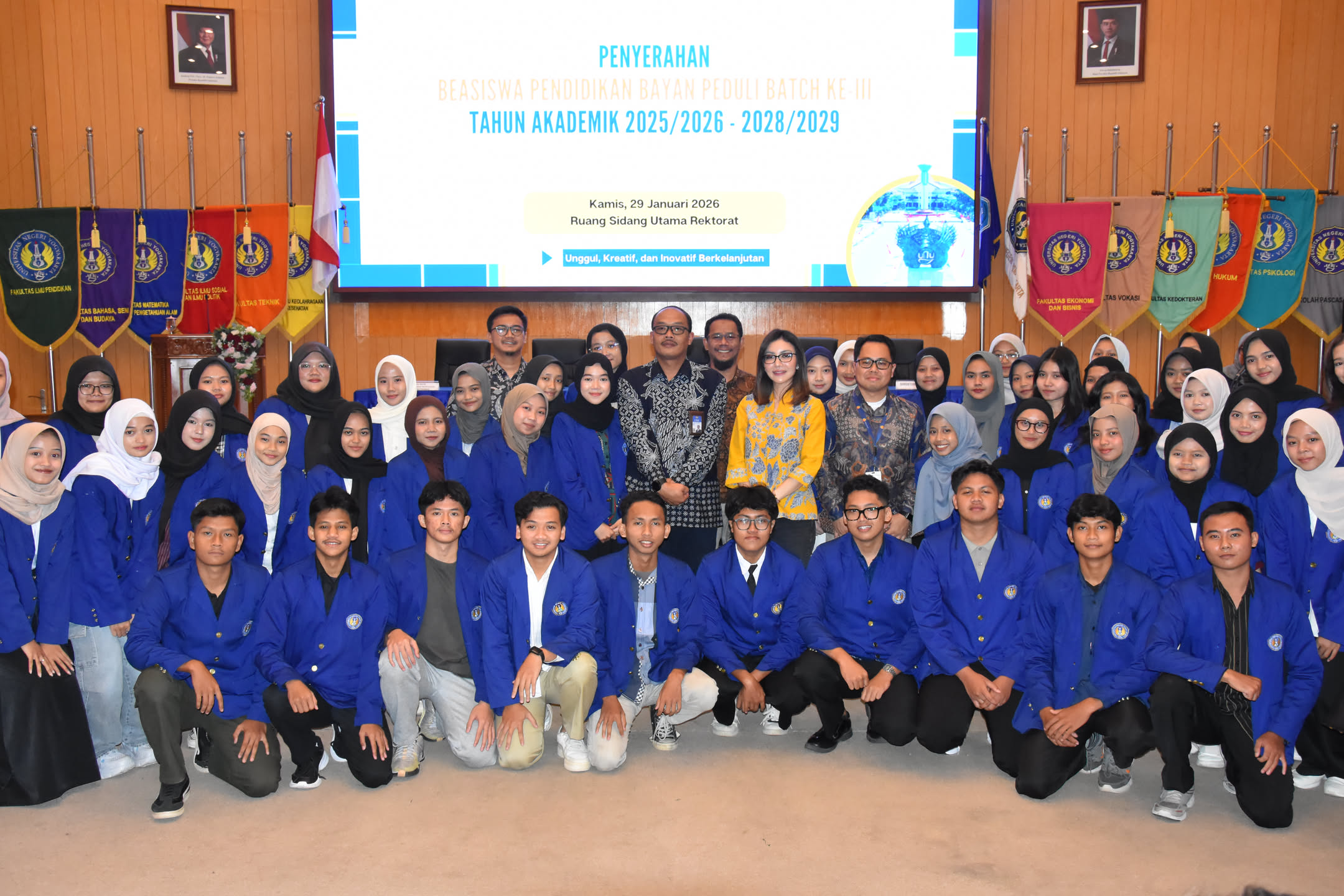 Universitas Negeri Yogyakarta (UNY) menjadi tuan rumah kegiatan Penyerahan Beasiswa Pendidikan Bayan Peduli Batch III Tahun Akademik 2025/2026 yang dilaksanakan pada Kamis, 29 Januari 2026, bertempat di Ruang Sidang Utama Rektorat UNY. Kegiatan ini menjadi momentum strategis penguatan kolaborasi antara dunia pendidikan tinggi dan dunia industri dalam pengembangan sumber daya manusia Indonesia.