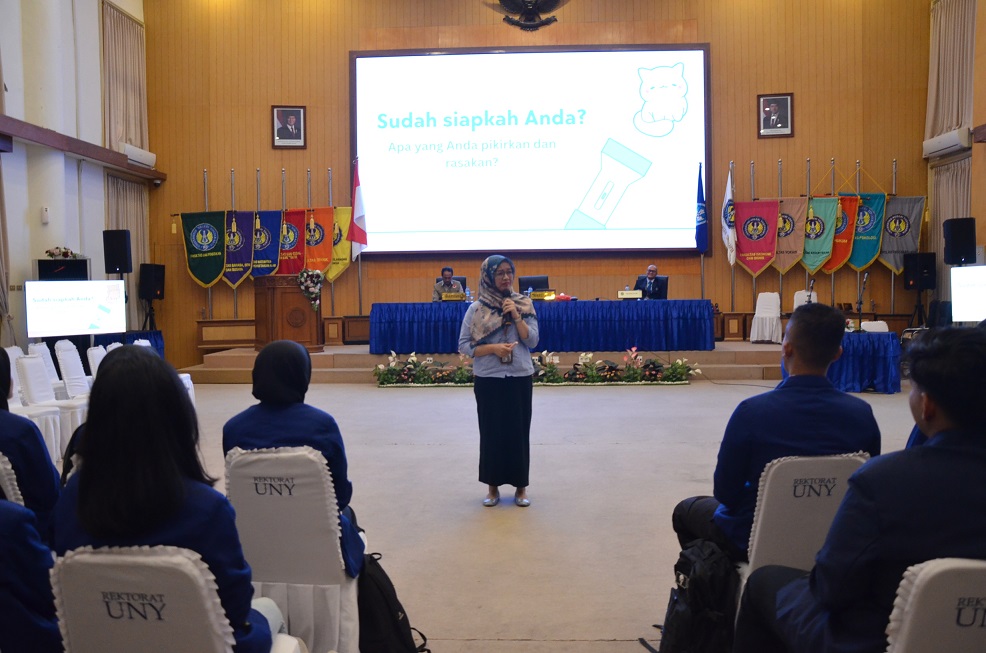 Dalam rangkaian pembekalan, UNY menghadirkan dua narasumber kompeten di bidang kebencanaan dan psikologi. Narasumber pertama, Kepala Bidang Pencegahan, Kesiapsiagaan, serta Rehabilitasi dan Rekonstruksi BPBD DIY Robertus Ali Sadikin, S.H., membekali mahasiswa dengan pemahaman kesiapsiagaan serta peran mahasiswa dalam rehabilitasi masyarakat pascabencana. Sementara itu, Rahmatika Kurnia Romadhani, S.Psi., M.Psi., Psikolog, dosen Fakultas Psikologi UNY, menyampaikan materi mengenai resiliensi psikologis dan pendampingan psikososial bagi masyarakat terdampak bencana.