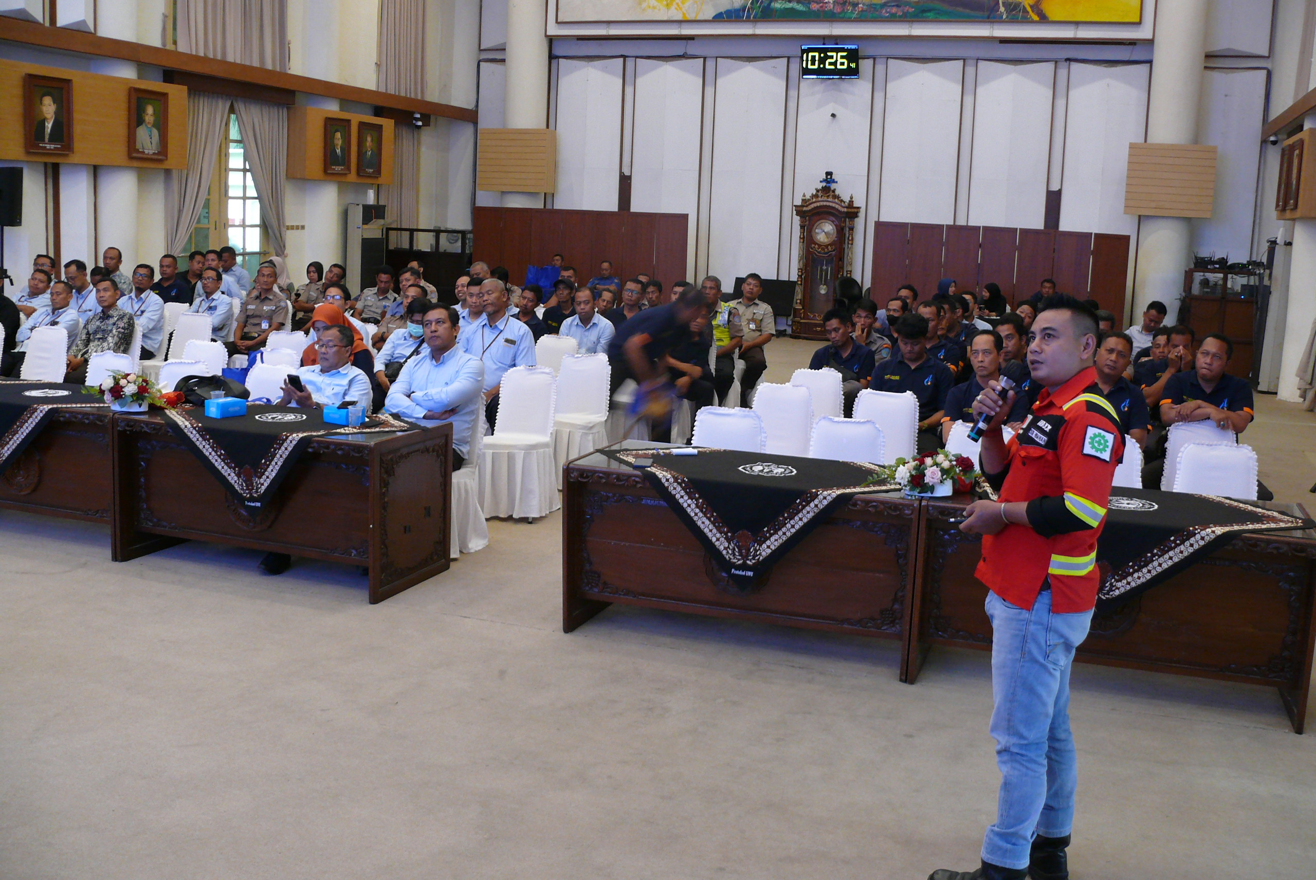 Universitas Negeri Yogyakarta (UNY) menunjukkan komitmen serius dalam peningkatan keselamatan dan kesiapsiagaan darurat dengan menyelenggarakan pelatihan intensif mengenai operasional mobil pemadam kebakaran (Damkar). Pelatihan yang berlangsung di Ruang Sidang Utama Rektorat UNY ini dihadiri oleh tim penanganan bencana internal UNY dan perwakilan dari berbagai unit.