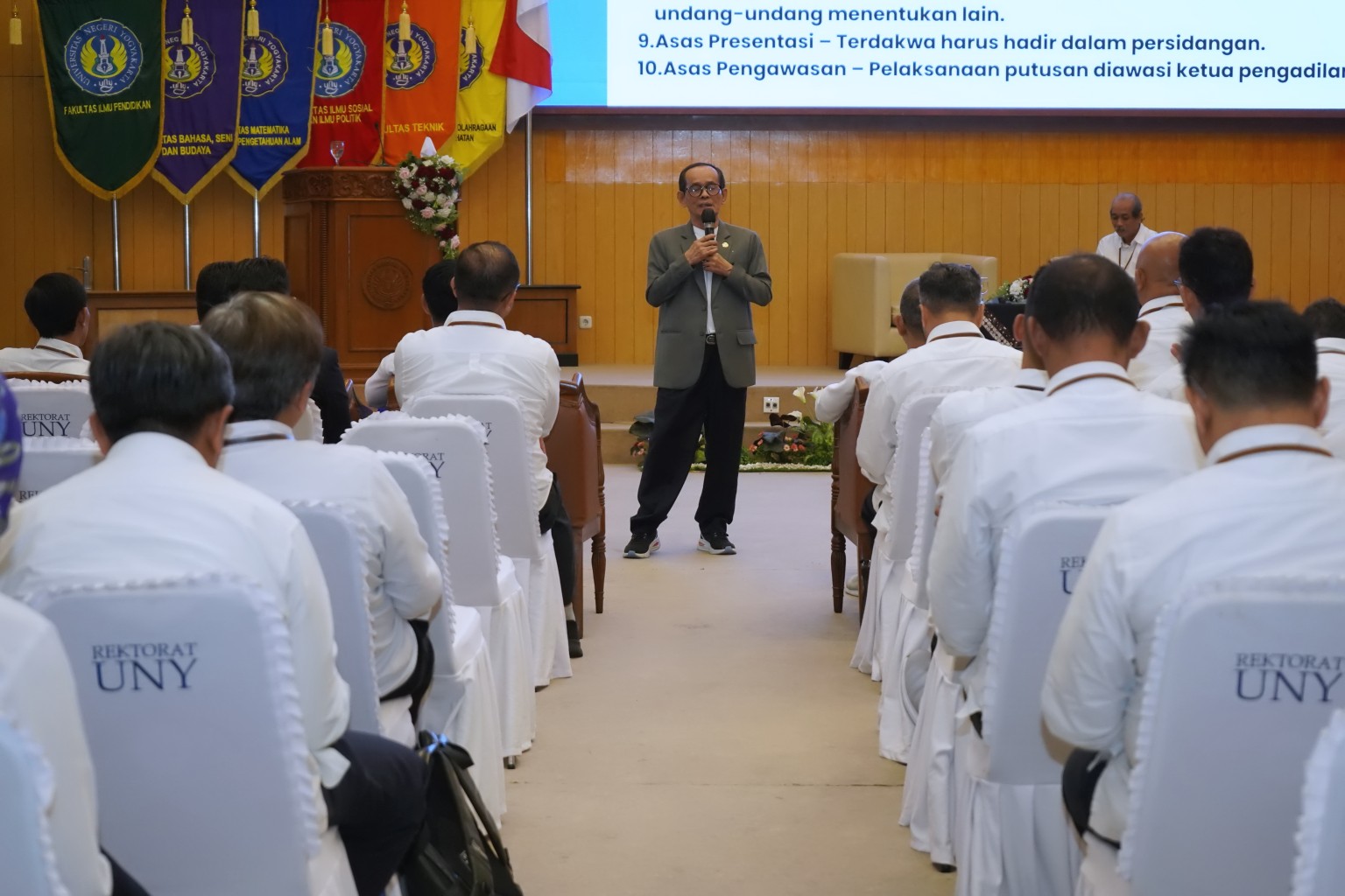 Universitas Negeri Yogyakarta (UNY) menyelenggarakan Workshop bertajuk "Literasi Penanganan Perkara Hukum di Perguruan Tinggi" pada hari Senin, 24 November 2025, di Ruang Sidang Utama Rektorat. Acara penting ini dibuka dengan sambutan dan arahan langsung dari Rektor UNY, Prof. Dr. Sumaryanto, M.Kes., AIFO. Dalam arahannya, Prof. Sumaryanto menekankan betapa krusialnya workshop ini bagi para pemangku kebijakan di lingkungan UNY, khususnya dalam menaati segala peraturan dan aturan yang berlaku. Tujuannya adalah meminimalisir kendala atau potensi menyalahi prosedur yang dapat timbul dalam operasional kampus.
