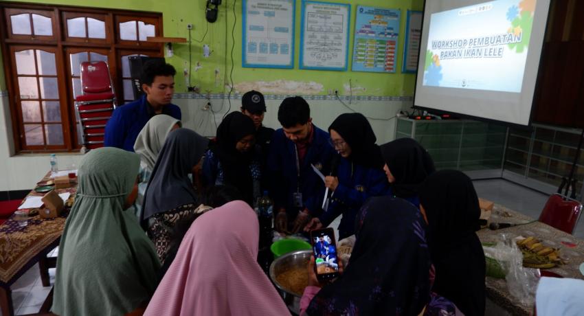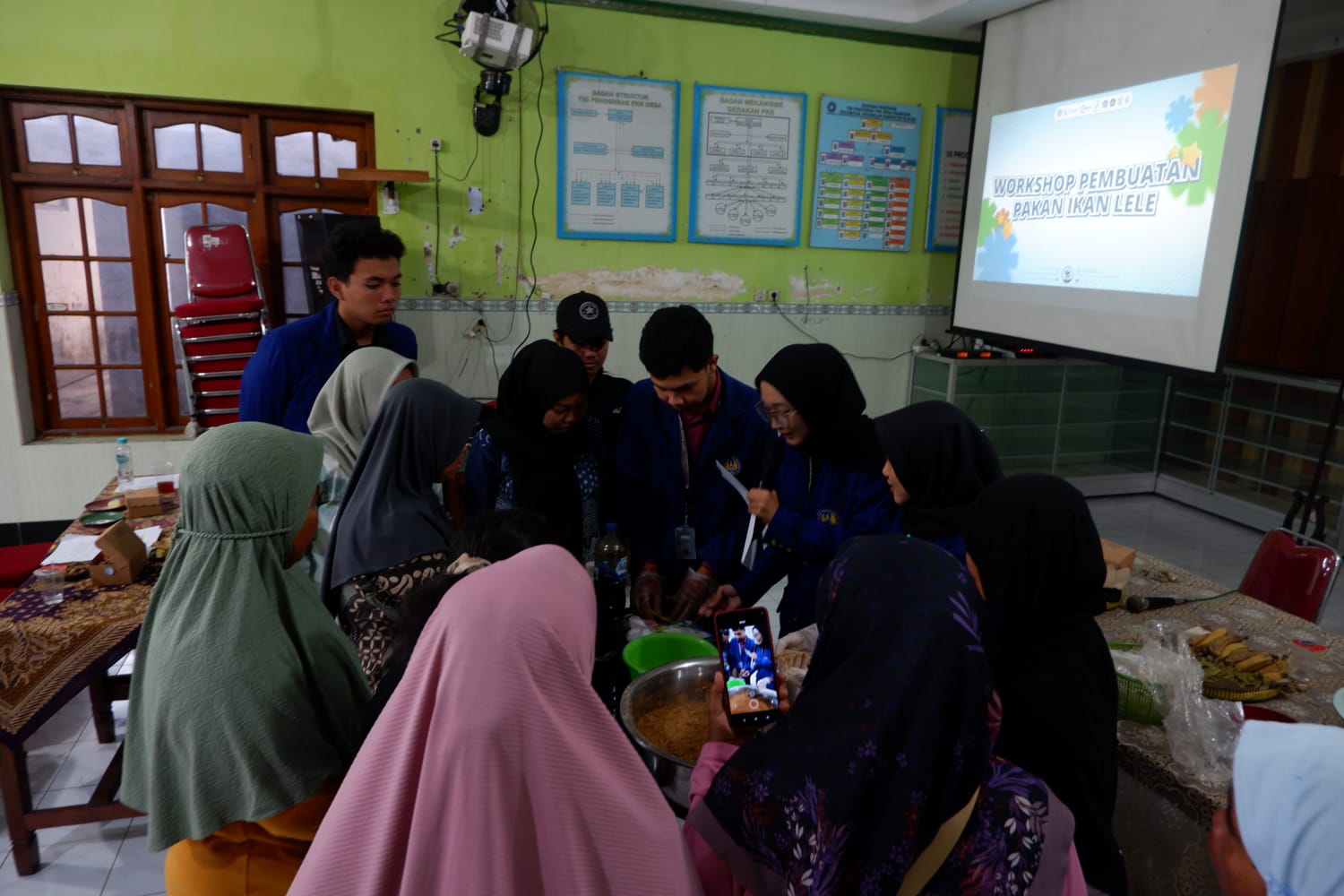 Di sisi lain, limbah pertanian berupa sekam padi masih banyak diolah dengan cara dibakar, menimbulkan pencemaran, dan belum memberi nilai tambah. Melalui workshop ini, masyarakat didorong untuk memanfaatkan potensi lokal dengan mengintegrasikan sektor perikanan dan pertanian, salah satunya melalui pelatihan pembuatan pakan ikan lele berbasis fermentasi yang menggunakan sekam padi sebagai salah satu bahan baku. Langkah ini diharapkan mampu menekan biaya produksi, meningkatkan pemanfaatan limbah pertanian, dan mendukung keberlanjutan usaha budidaya lele di desa.