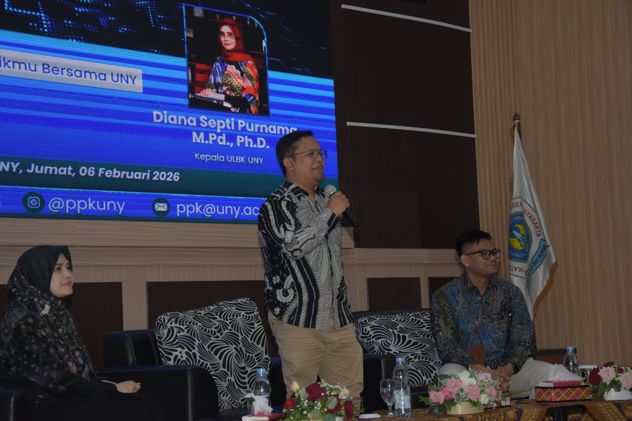 Narasumber kedua, Diana Septi Purnama, M.Pd., Ph.D., Kepala Unit Layanan Bimbingan Konseling (ULBK) UNY, menyampaikan materi “Menyusun Roadmap Karier Mahasiswa dan Alumni.” Ia menjelaskan pentingnya self-assessment, teknik analisis SWOT pribadi secara objektif, serta penyusunan rencana aksi menggunakan metode SMART (Specific, Measurable, Achievable, Relevant, Time-bound) agar perencanaan karier lebih terarah dan realistis.