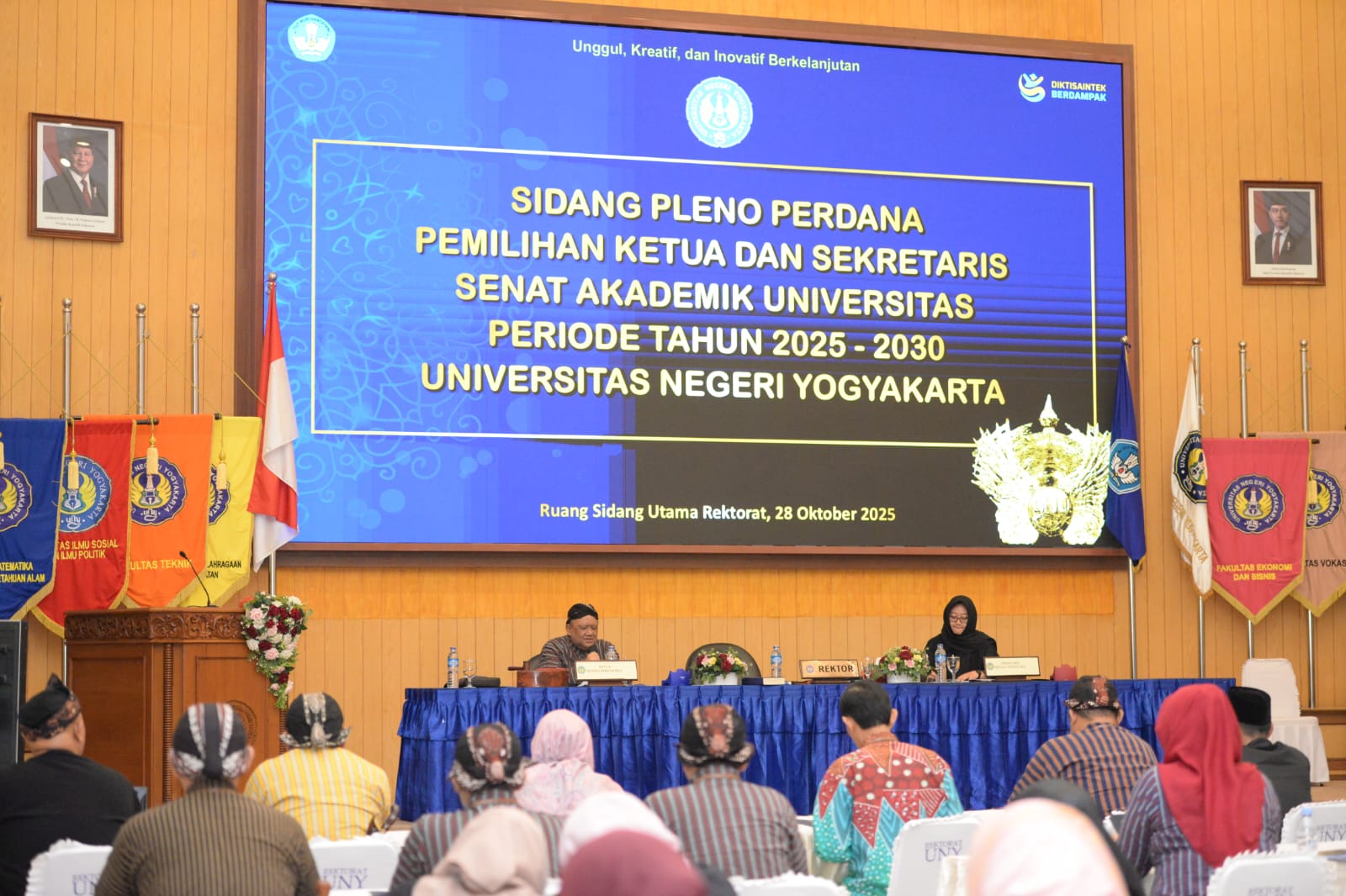 Universitas Negeri Yogyakarta (UNY) telah menetapkan pimpinan baru Senat Akademik Universitas (SAU) untuk periode 2025-2030. Melalui Rapat Pleno yang diselenggarakan pada Selasa (28/10/2025), Prof. Dr. Sulis Triyono, M.Pd., terpilih sebagai Ketua SAU. Rapat Pleno Pemilihan Ketua SAU ini bertempat di Ruang Sidang Utama, Lantai 2, Gedung Rektorat UNY.