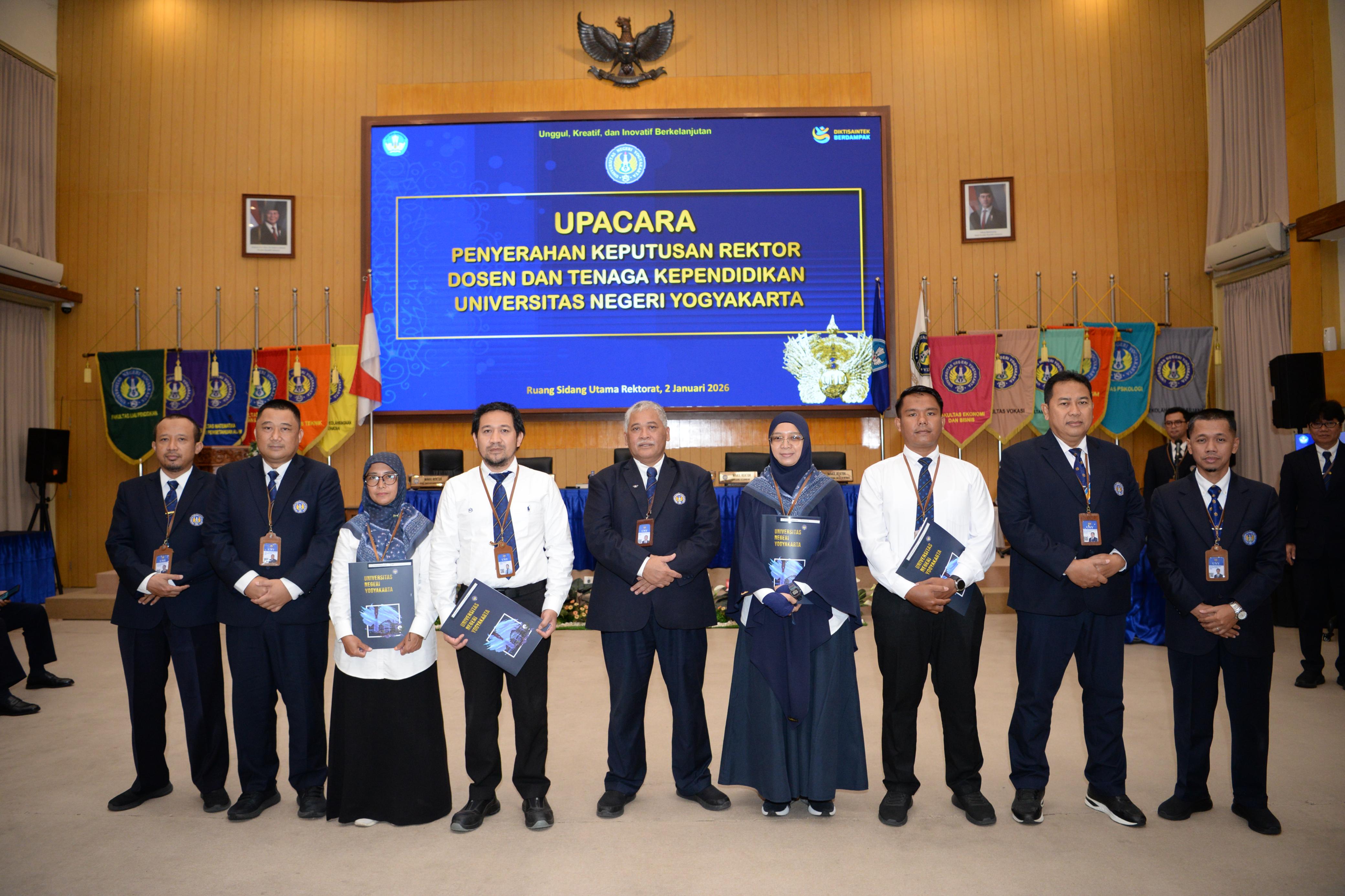 Universitas Negeri Yogyakarta (UNY) memulai lembaran tahun 2026 dengan langkah strategis dalam penguatan Sumber Daya Manusia (SDM). Pada hari Jumat (2/1/2026), bertempat di Ruang Sidang Utama Rektorat, UNY menggelar Upacara Penyerahan Keputusan Rektor kepada sejumlah Dosen dan Tenaga Kependidikan (Tendik).