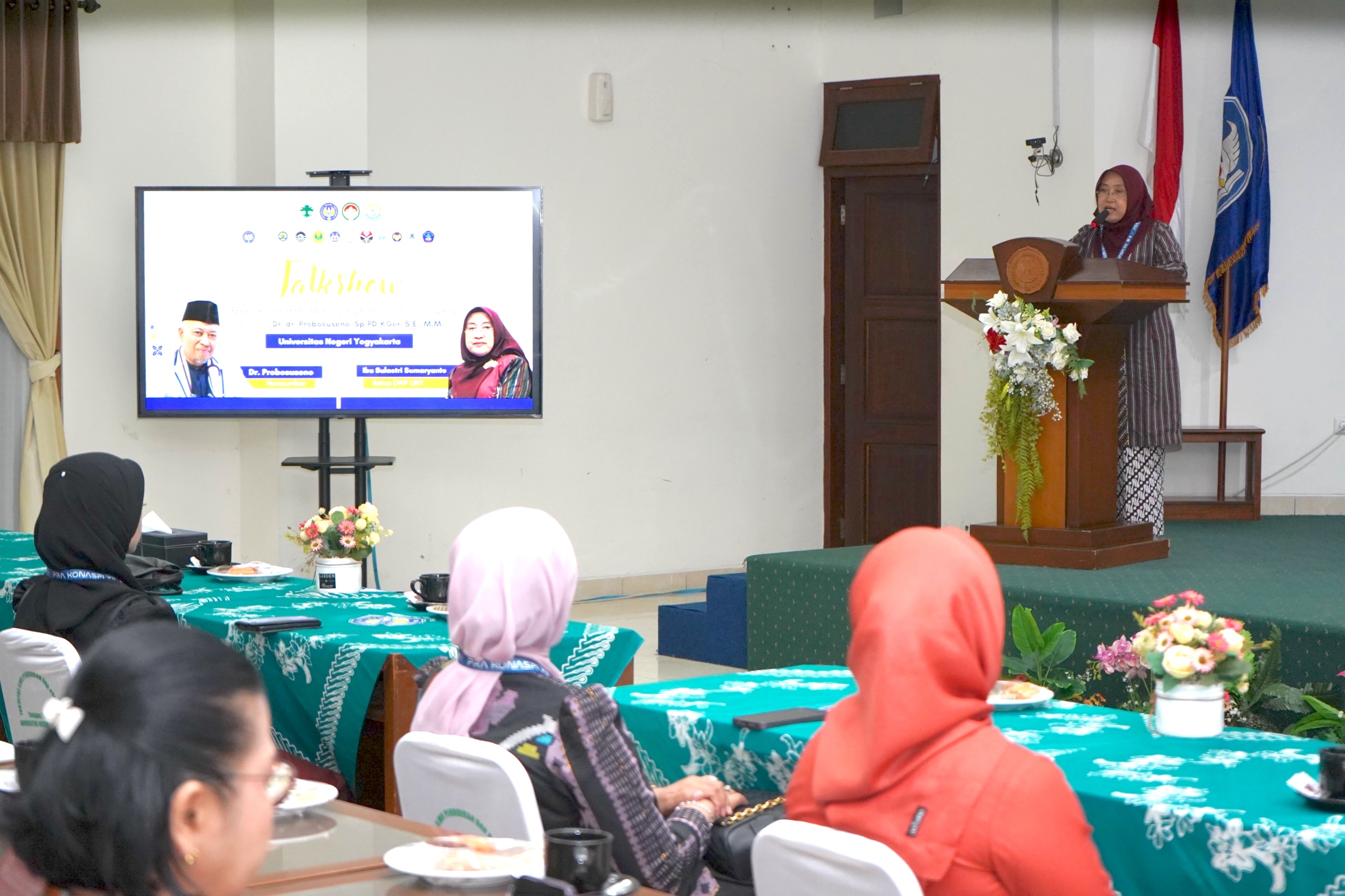 Sebagai bagian utama rangkaian Pra Konaspi XII 2026, Pengurus Pusat DWP UNY menyelenggarakan talkshow bertajuk “Literasi Kesehatan: Menuju Ibu Bahagia di Usia Senja”. Talkshow ini menghadirkan narasumber Dr. dr. Probosuseno, Sp.PD-KGer, FINASIM, SE, MM, AIFO-K, seorang dokter spesialis penyakit dalam konsultan geriatri yang dikenal luas atas kepakarannya di bidang kesehatan lanjut usia.