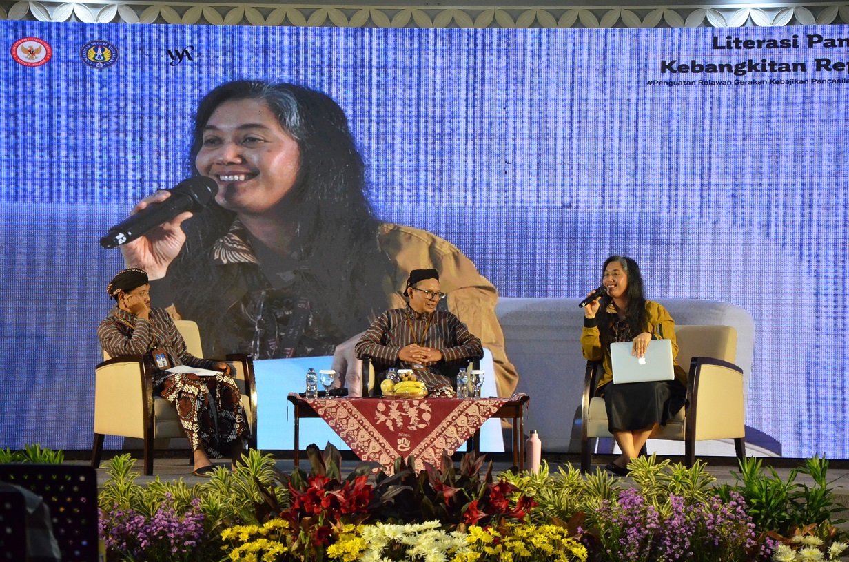 Sementara itu, Direktur Jaringan dan Pembudayaan BPIP, Toto Purbiyanto, M.Ti., menegaskan bahwa Pancasila adalah ideologi dan dasar pandangan hidup. “Kita sepakat bahwa Pancasila tidak boleh hilang digantikan dengan ideologi lain” kata Toto. Oleh karena itu tujuan kegiatan ini adalah memperkuat nilai karakter Pancasila agar menjadi habituasi keseharian. Saat ini kita kekurangan literasi Pancasila karena dalam pendidikan formal sudah banyak dihilangkan seperti Penataran P4 atau pelajaran Pendidikan Moral Pancasila (PMP) sehingga terjadi degradasi moral. Harapannya para mahasiswa dapat menjadi relawan Kebajikan Pancasila yaitu orang yang bertutur kata dan bertingkah laku sesuai Pancasila.