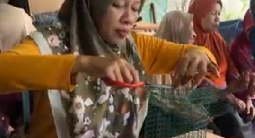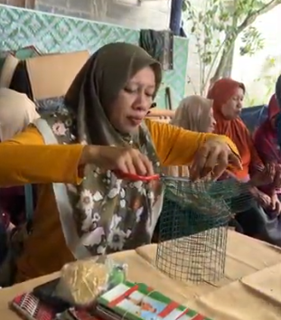 Sementara itu, Ricki Dwi Erlangga menjelaskan secara rinci teknis pembuatan pot dari serabut kelapa kepada peserta kegiatan. Ia memaparkan bahwa proses pembuatan pot dimulai dari pemilihan serabut kelapa yang kering dan bersih, kemudian direndam agar teksturnya lebih lentur dan mudah dibentuk. Setelah itu, serabut disusun pada cetakan atau rangka kawat sesuai bentuk pot yang diinginkan.