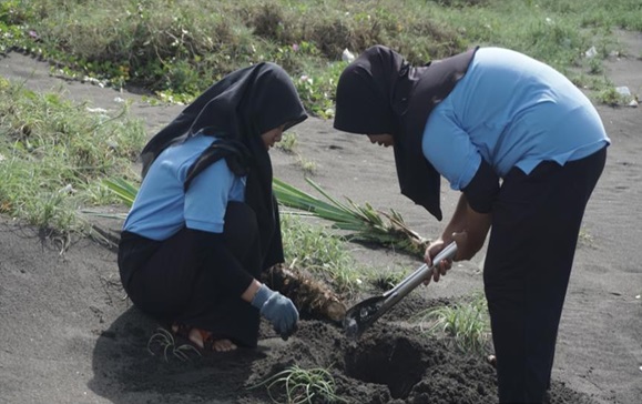 Pandan laut (Pandanus tectorius) dipilih karena kemampuannya dalam menahan abrasi dan menjaga stabilitas ekosistem pesisir yang rentan terdampak perubahan iklim dan aktivitas manusia. “Mahasiswa tidak cukup hanya memahami teori pembangunan berkelanjutan. Mereka harus terjun langsung, merasakan proses, dan memahami urgensi menjaga lingkungan,” ujar Dr. Riko Septiantoko, M.Pd., saat mendampingi pelaksanaan penanaman.
