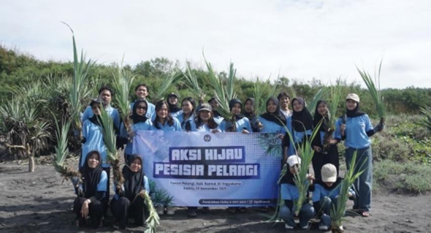 Sebanyak 22 mahasiswa Departemen Fisika Universitas Negeri Yogyakarta (UNY) yang mengikuti mata kuliah Pendidikan dan Pembangunan Berkelanjutan bersama dosen pengampu, Dr. Riko Septiantoko, M.Pd., melaksanakan aksi penanaman pandan laut di Pantai Pelangi, Bantul belum lama ini. Kegiatan ini menjadi bagian dari implementasi pembelajaran sekaligus bentuk kontribusi nyata sivitas akademika UNY dalam mendukung Tujuan Pembangunan Berkelanjutan (Sustainable Development Goals/SDGs).
