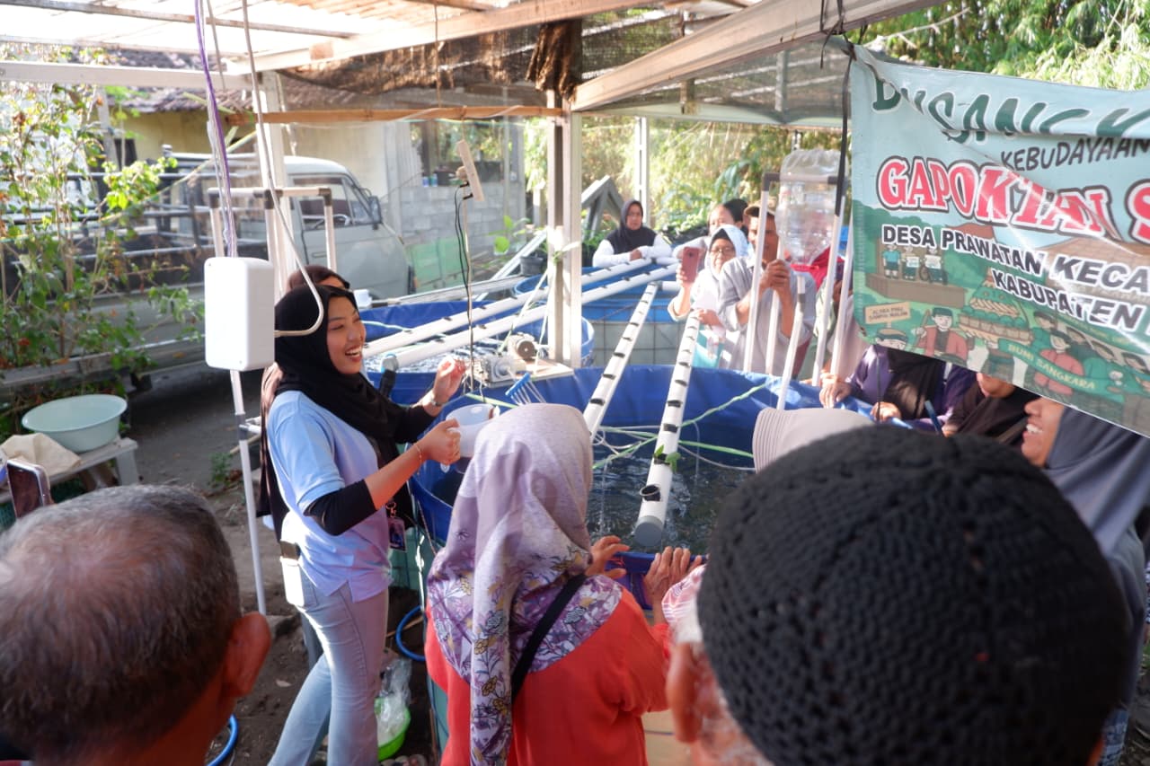 Para peserta mempraktikkan Penyemaian Hidroponik yaitu peserta mempraktikkan cara menanam sayuran dengan sistem hidroponik, yang lebih ramah lingkungan dan hemat lahan, Fermentasi Bioflok yaitu warga dilatih memanfaatkan mikroorganisme untuk menjaga kualitas air kolam, sehingga lele tumbuh sehat tanpa membutuhkan banyak penggantian air. Selain juga praktik Pengelolaan IoT Feed and Care, disini mahasiswa mendampingi warga dalam penggunaan perangkat IoT untuk pakan otomatis dan monitoring kolam, sehingga teknologi benar-benar dapat dirasakan manfaatnya oleh masyarakat.