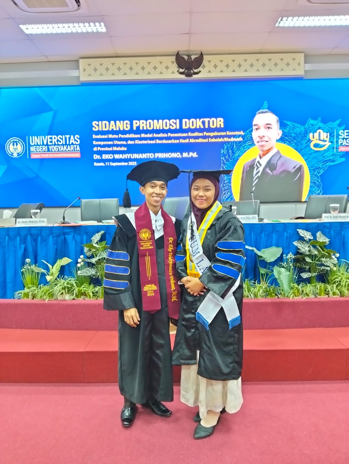 Sekolah Pascasarjana Universitas Negeri Yogyakarta (UNY) mencatat momen akademik istimewa dengan terselenggaranya ujian terbuka disertasi oleh dua mahasiswa Program Doktor (S3) Penelitian dan Evaluasi Pendidikan, yakni Dr. Eko Wahyunanto Prihono, M.Pd., dan Dr. Fitria Lapele, M.Pd. Keduanya merupakan pasangan suami istri sekaligus dosen di Universitas Islam Negeri (UIN) A.M. Sangadji Ambon.