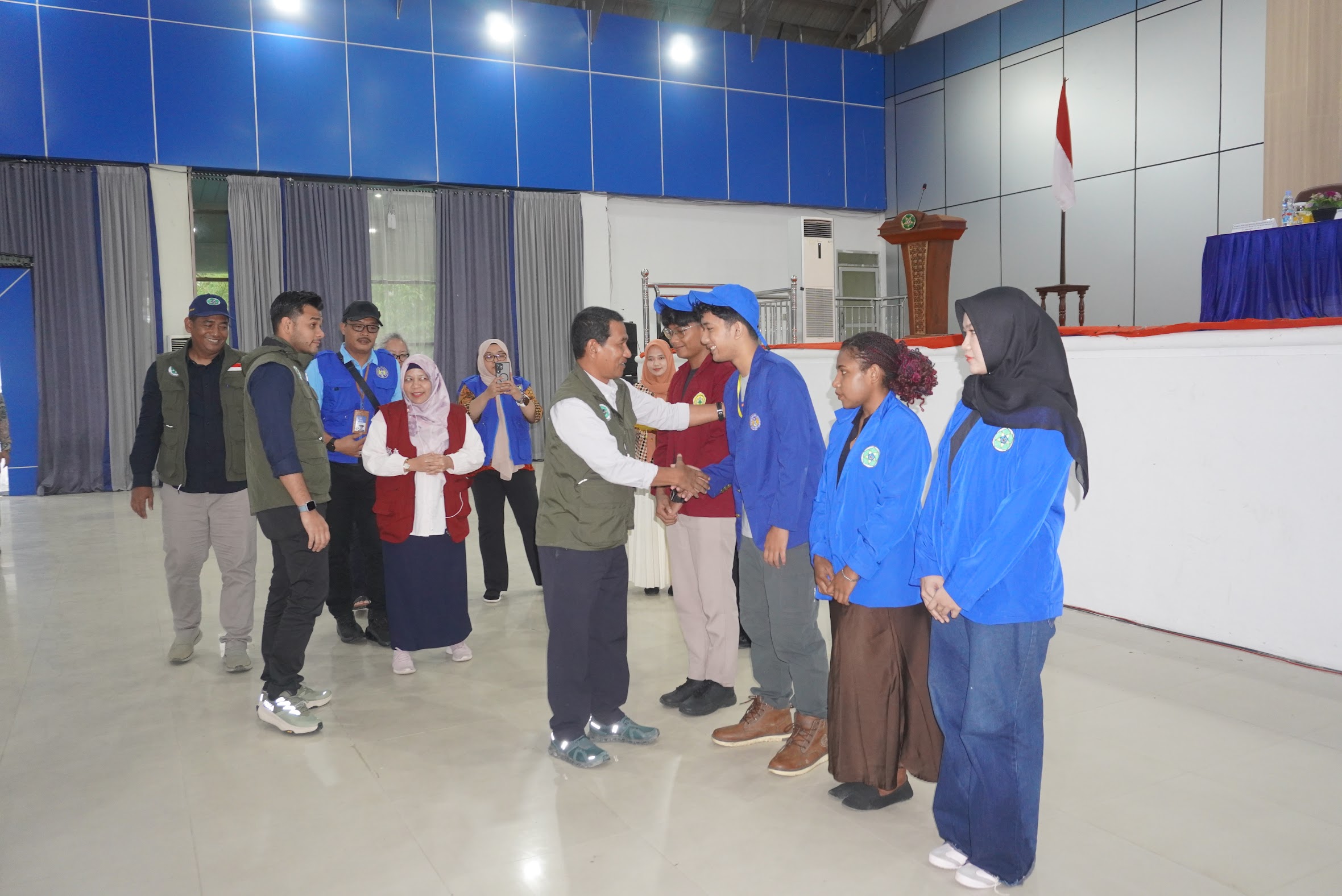Rangkaian acara ditutup dengan penyematan atribut topi KKN serta prosesi adat Aceh, Peusijuek. Prosesi ini dilakukan sebagai bentuk permohonan doa dan keberkahan agar seluruh rangkaian KKN Kemanusiaan berjalan lancar, aman, dan membawa manfaat luas bagi masyarakat Aceh Tamiang.