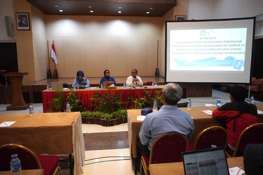 Universitas Negeri Yogyakarta (UNY) menyelenggarakan Workshop dan Sosialisasi Permendikbudristek RI Nomor 55 Tahun 2024 Tentang Pencegahan dan Penanganan Kekerasan Di Lingkungan Perguruan Tinggi pada tanggal 23 Desember 2025, di ruang pertemuan Hotel UNY. Kegiatan ini dihadiri oleh Kepala Bagian Tata Usaha Fakultas dan Sekolah Pascasarjana, Kepala Bagian dan Sekretaris Bagian pada Direktorat, Kepala Unit Perpustakaan, Unit Layanan Bimbingan Konseling dan Unit Layanan Kearsipan. Workshop ini menjadi ruang diskusi tentang penanganan dan pencegahan kekerasan di perguruan tinggi. Kegiatan ini diprakarsai oleh Satgas Pencegahan dan Penanganan Kekerasan Universitas Negeri Yogyakarta (Satgas PPK UNY).