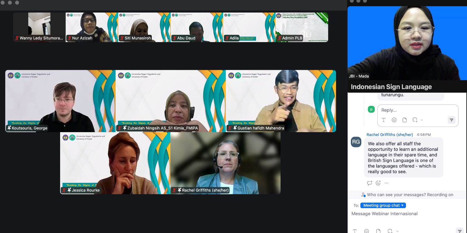 Universitas Negeri Yogyakarta (UNY) berkolaborasi dengan University of Exeter, Inggris, menyelenggarakan webinar internasional bertema Inclusive Education and Disability Support in Higher Education pada 29 September 2025. Kegiatan ini menjadi forum penting bagi akademisi, praktisi, dan mahasiswa untuk bertukar pengalaman mengenai penguatan layanan disabilitas dan pendidikan inklusif di perguruan tinggi.
