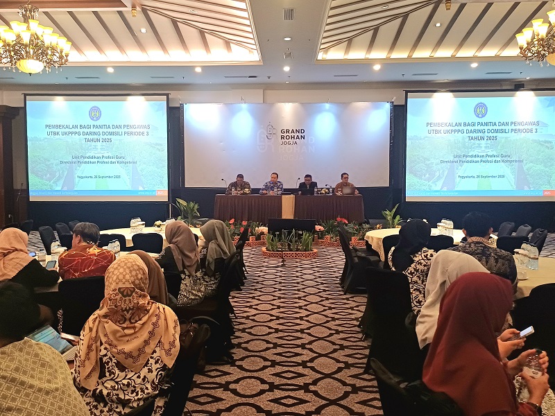 Universitas Negeri Yogyakarta melalui Direktorat Pendidikan Profesi dan Kompetensi Menyelenggarakan Pembekalan Panitia dan Pengawas UTBK UKPPPG Daring Domisili Periode 3 Tahun 2025. Kegiatan ini dilaksanakan pada hari Jumat di Grand Rohan Jogja, dengan melibatkan dosen dan tenaga kependidikan serta tim pengelola Direktorat Pendidikan Profesi dan Kompetensi, Universitas Negeri Yogyakarta.