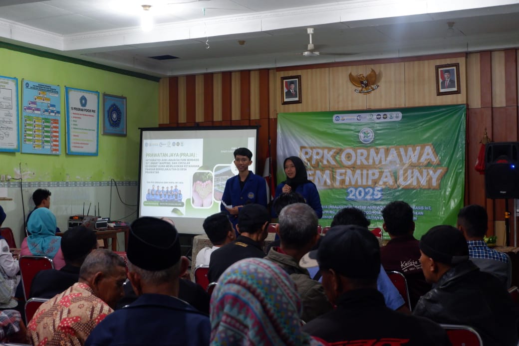 Sebagai tindak lanjut dari pendanaan program, Tim PPK Ormawa BEM FMIPA UNY secara resmi meluncurkan kegiatan pengabdian masyarakat di Desa Prawatan, Kecamatan Jogonalan, Kabupaten Klaten, melalui acara Pembukaan Program pada 24 Juli 2025 di Balai Desa Prawatan. Program ini mengusung tema Smart Farming dengan Judul “Integrated Agri-Aquaculture berbasis IoT, Smart Mapping, dan Circular Economy Guna Mewujudkan Ketahanan Pangan Berkelanjutan di Desa Prawatan”.