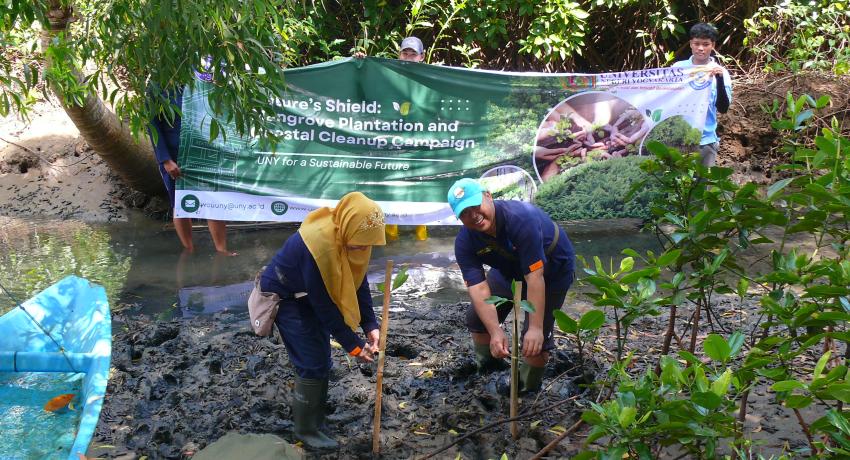 Universitas Negeri Yogyakarta (UNY) kembali menegaskan komitmennya dalam menjaga kelestarian lingkungan dengan melaksanakan penanaman pohon mangrove di kawasan pesisir Pantai Pasir Mendit, Jangkaran, Temon, Kulon Progo, pada Minggu (12/10/25). Kegiatan ini merupakan bagian dari kontribusi UNY dalam mendukung Tujuan Pembangunan Berkelanjutan (SDGs) khususnya poin ke-13 (Penanganan Perubahan Iklim), poin ke-14 (Kehidupan perairan), dan poin ke-15 (Ekosistem Daratan), sekaligus memperkuat peran UNY dalam pemeringkatan UI GreenMetric (UIGM), yang menilai kampus berdasarkan praktik keberlanjutan lingkungan.