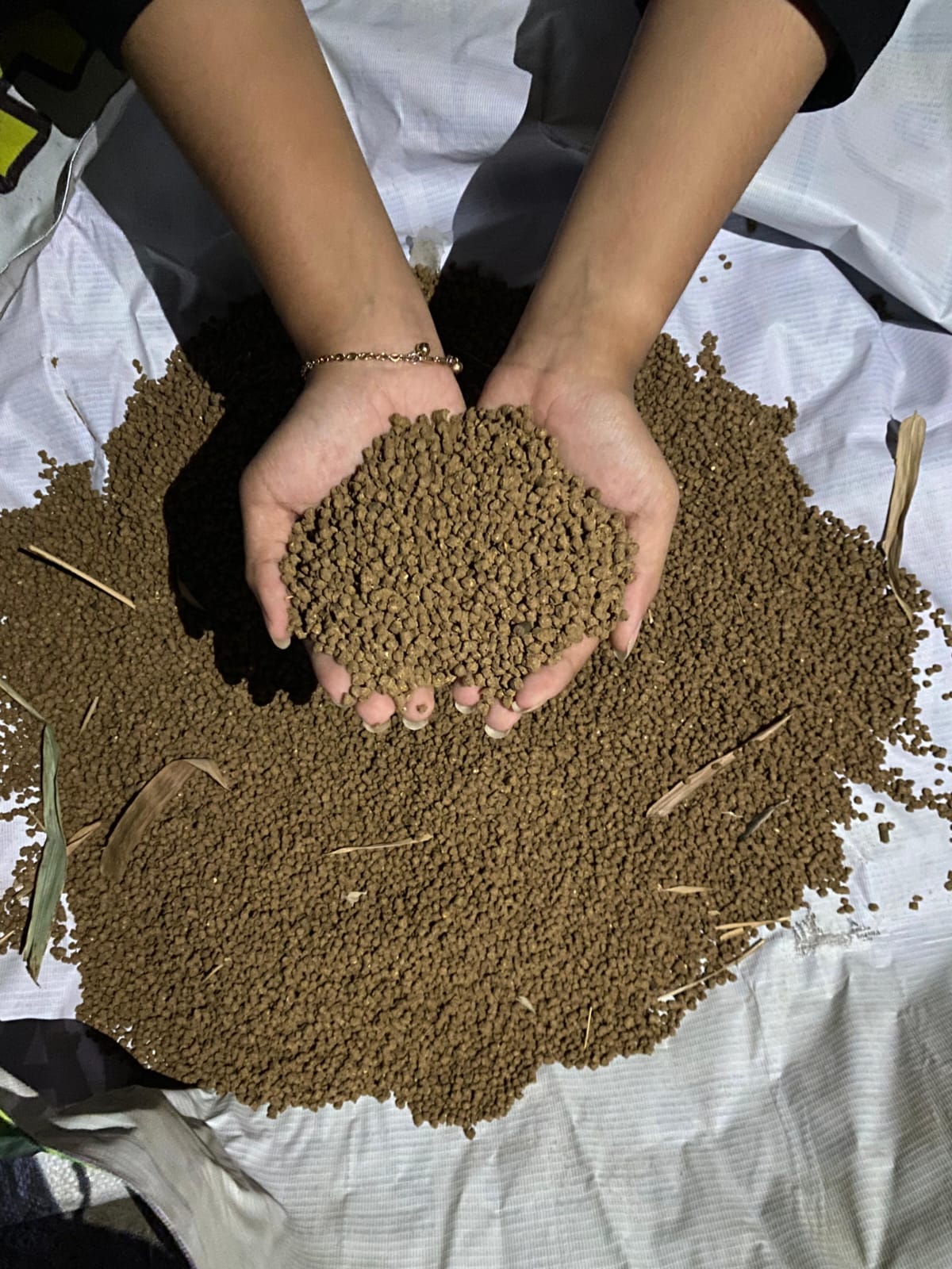 Setelah sesi materi, kegiatan dilanjutkan dengan demonstrasi pembuatan pakan ikan lele secara langsung oleh Nasywa Safira Ardhani, Nurmala Jati, dan Khusni Amri. Peserta diajak melihat dan mempraktikkan proses mulai dari pencampuran bahan, fermentasi, hingga pencetakan pakan dengan menggunakan alat pencetak pelet “feedsmart” rakitan tim PRAJA. Antusiasme masyarakat tampak dari keaktifan peserta yang berdiskusi dan mencoba langsung proses pembuatan pakan alternatif ini.