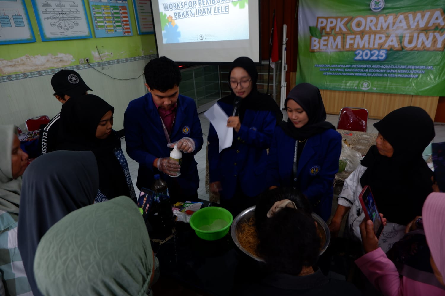 Desa Prawatan, Kecamatan Jogonalan, Kabupaten Klaten, menjadi tempat pelaksanaan kegiatan Workshop Pembuatan Pakan Ikan Lele Berbasis Fermentasi dengan Pemanfaatan Sekam Padi belum lama ini di Aula Balai Desa Prawatan. Kegiatan ini merupakan salah satu program PRAJA (Prawatan Jaya) yang digagas oleh Tim PPK Ormawa BEM FMIPA UNY sebagai upaya memperkuat ketahanan pangan melalui pengembangan inovasi perikanan dan pertanian berbasis ekonomi sirkular yang ramah lingkungan.