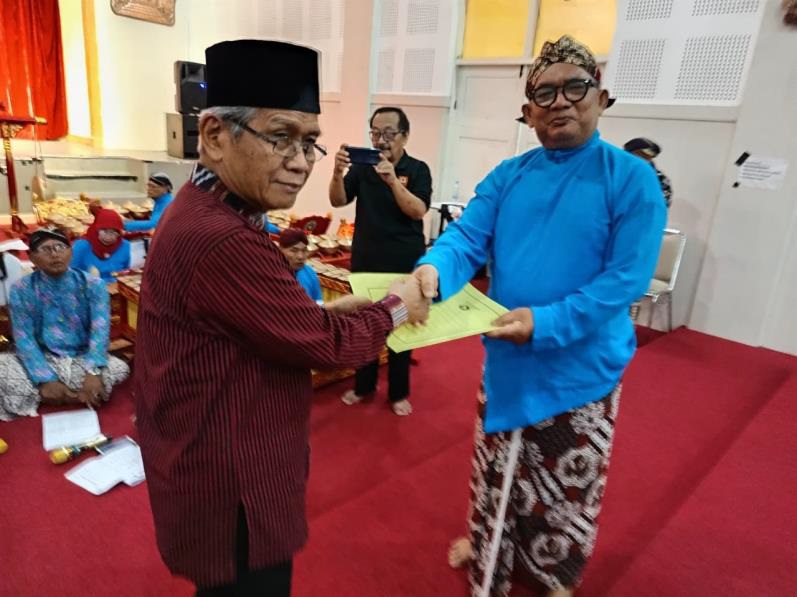 Pada kesempatan itu dilakukan penyerahan notasi tembang dari Dr. Sardiman AM, M.Pd. kepada Koordinator ILB Drs. Wien Pudji Priyanto, M.Pd.