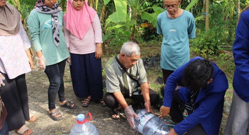 Selain penyampaian materi, mahasiswa KKN juga mengajak masyarakat mengikuti praktik langsung pembuatan komposter sederhana menggunakan galon atau ember bekas. Komposter ini digunakan untuk mengolah sampah organik seperti sisa sayur, kulit buah, dan daun kering melalui proses fermentasi dengan bantuan aktivator seperti EM4 dan larutan molase.