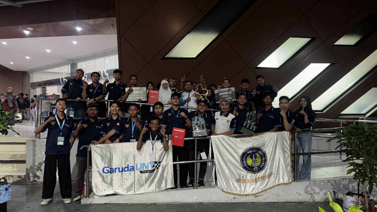 Tim Garuda Universitas Negeri Yogyakarta (UNY) kembali mengukir prestasi membanggakan di kancah nasional. Dalam ajang Kontes Mobil Hemat Energi (KMHE) 2025 yang diselenggarakan di Universitas Jember pada 23–26 Oktober 2025, Tim Garuda UNY berhasil meraih Juara 1 kategori Urban Concept Motor Pembakaran Dalam (MPD) Bensin dan Juara 2 kategori Urban Concept MPD Etanol. Capaian tersebut semakin mempertegas konsistensi inovasi UNY dalam bidang teknologi kendaraan hemat energi yang ramah lingkungan dan berkelanjutan.