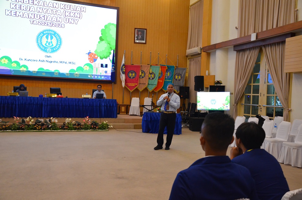 Sedangkan pembekalan teknis pelaksanaan KKN disampaikan Kepala Divisi KKN Dr. Kuncoro Asih Nugroho dan Tim IT KKN Efi Laila Latifah, M.Kom yang memaparkan bahwa pembekalan KKN Kemanusiaan UNY TA 2025/2026 bertujuan menyiapkan mahasiswa untuk membantu meringankan beban masyarakat terdampak bencana melalui program yang humanis, partisipatif, layak, dan dapat diterima masyarakat. Materi pembekalan mencakup alur pelaksanaan KKN, penyusunan dan pelaporan program, etika mahasiswa, serta kewajiban administratif seperti logbook, matriks kegiatan, laporan, dan luaran program. Mahasiswa juga dibekali pemahaman tentang sanksi pelanggaran KKN agar mampu melaksanakan pengabdian secara bertanggung jawab sebagai representasi civitas akademika UNY.