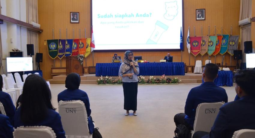 Dalam rangkaian pembekalan, UNY menghadirkan dua narasumber kompeten di bidang kebencanaan dan psikologi. Narasumber pertama, Kepala Bidang Pencegahan, Kesiapsiagaan, serta Rehabilitasi dan Rekonstruksi BPBD DIY Robertus Ali Sadikin, S.H., membekali mahasiswa dengan pemahaman kesiapsiagaan serta peran mahasiswa dalam rehabilitasi masyarakat pascabencana. Sementara itu, Rahmatika Kurnia Romadhani, S.Psi., M.Psi., Psikolog, dosen Fakultas Psikologi UNY, menyampaikan materi mengenai resiliensi psikologis dan pendampingan psikososial bagi masyarakat terdampak bencana.